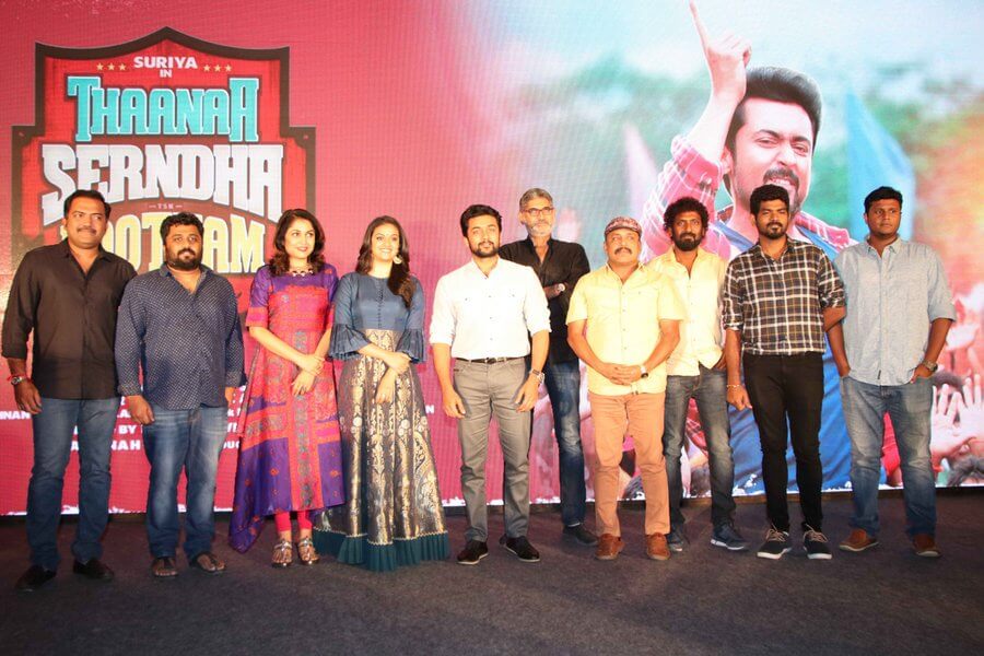 The upcoming grand Pongal release Thaana Serndha Koottam press meet had happened yesterday evening. Suriya, Keerthy Suresh, director Vignesh Shivan, Ramya Krishnan and other casts and crew members were present at the event.