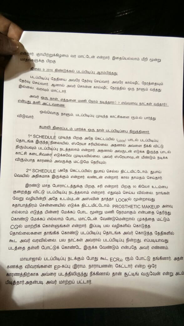 He wanted to change Shriya saying she is not good after completing the 1st schedule and a song left. He had decided the call sheet and timings but he never appeared as per timings and call sheet he made. Simbu cancelled Dubai location and wanted to shift to London. He delayed 2 months and finally agreed to shoot in Dubai."
