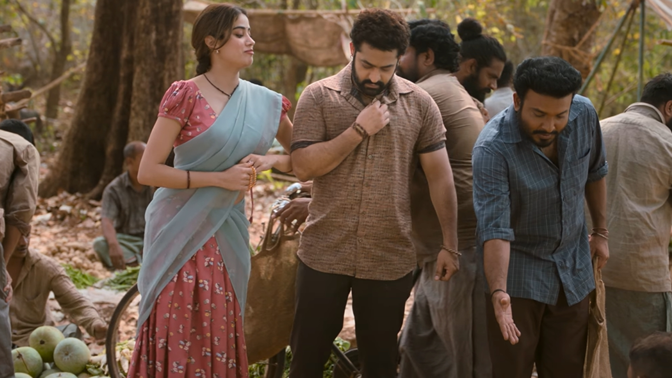Devara Part 1 stars N T Rama Rao, Saif Ali Khan, Janhvi Kapoor, Prakash Raj, Srikanth, and Shine. The movie was written and directed by Koratala Siva and produced by Sudhakar Mikkilineni and Kosaraju Harikrishna. The music for the movie was composed by Anirudh Ravichander.