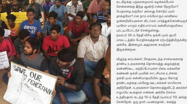 He insisted the people of other parts of the state to lend hands to Kanyakumari people. We may not get into the sea for search operation but we can make the suffering ones comfort. We can help and support them in any ways. Though the people are rejecting the money and other relief materials, the reality is they need monetary and relief benefits as they have lost the men who earned so far.