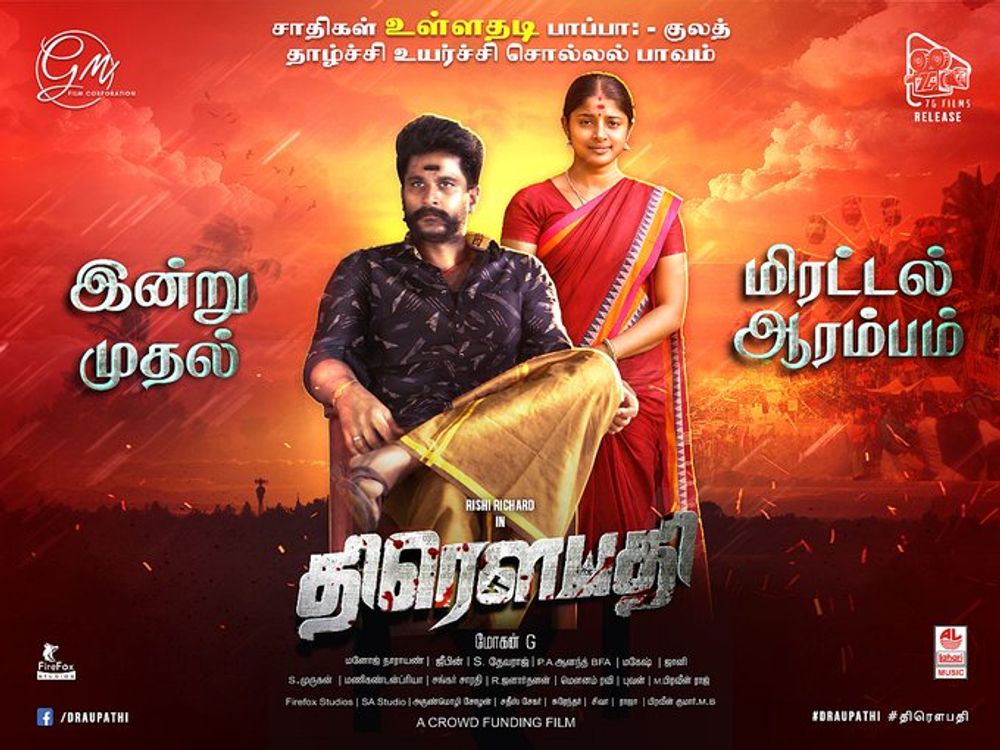 Draupathi is an action drama movie in the Tamil Language directed by Mohan G, who has directed Pazhayavannrapetai. Richard Rish and Sheela Rajkumar have done the lead roles along with Karunas. The movie talks about illegal register marriages and intercaste marriage issues happening across the state of Tamil Nadu.